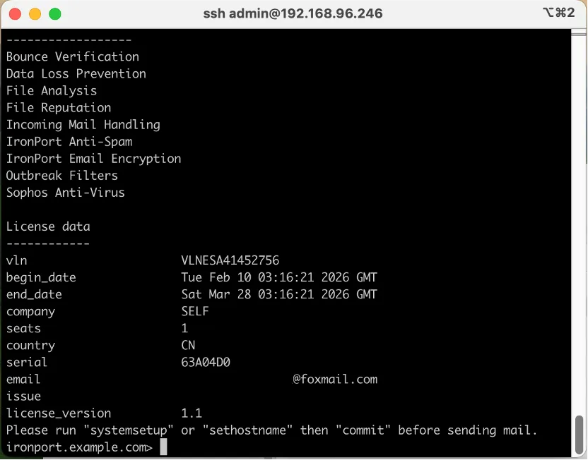 ironportplaintext运行命令loadlicense,选择粘贴,把获得的xml文件中的所有内容粘贴后按Crtl-D